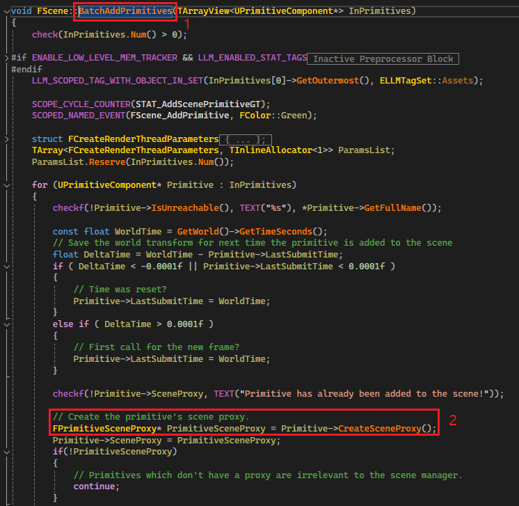 1. BatchAddPrimitives 로 부터 UPrimitiveComponent 들을 넘겨받습니다.