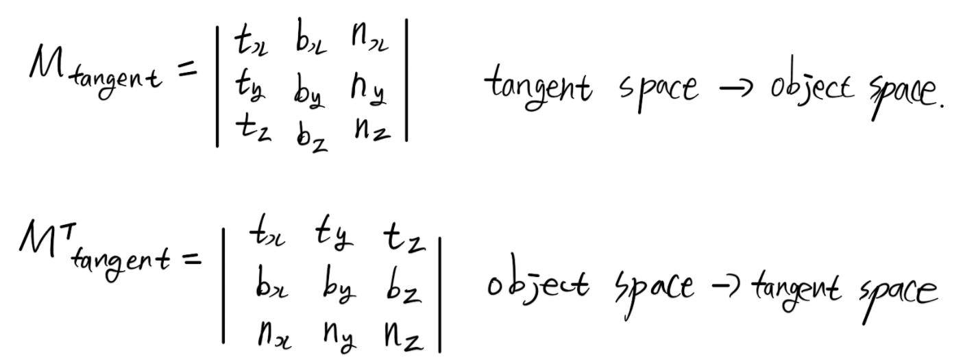 T, B, N 벡터를 모두 구하면 이제 부터는 Normal 을 탄젠트 공간에서 오브젝트 공간으로 변환 가능합니다.