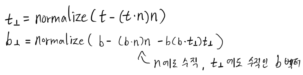 여러개의 T, B 벡터를 합산하고 나면 T, B, N 벡터는 서로 수직이 아닐 수 있습니다.