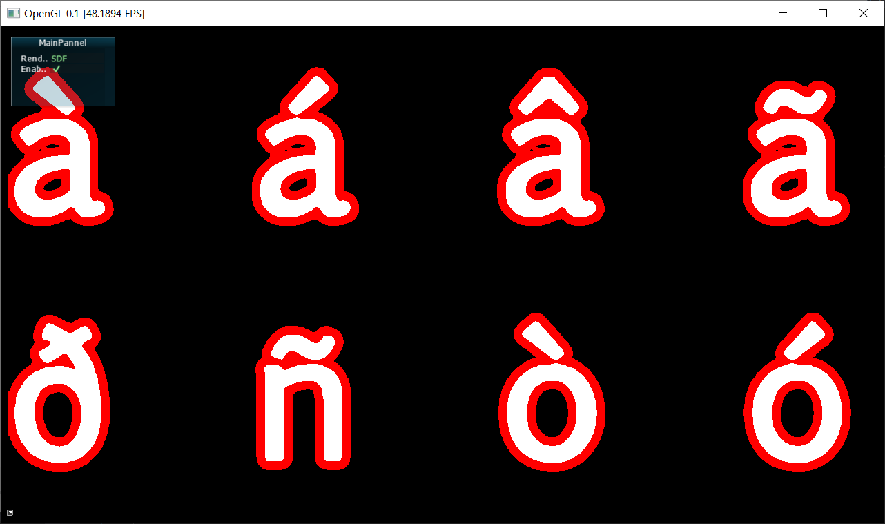 SDF를 깔끔한 외곽선 처리, 그리고 Outline 그리고 폰트의 Shadow 효과에도 활용할 수 있습니다.