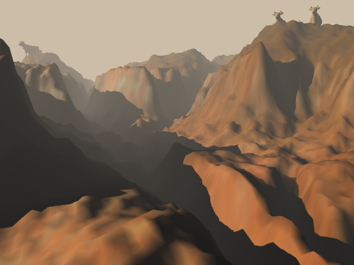 - terrain.cpp – 환경 로딩과 렌더링의 함수 정의를 포함합니다. 쉐도우 매핑 알고리즘에 필요한 함수는 Draw() 뿐입니다, 반면에 Load()와 GetDim()은 초기화 과정에 호출되어 적절히 바운딩 박스를 로드하고 설정합니다.