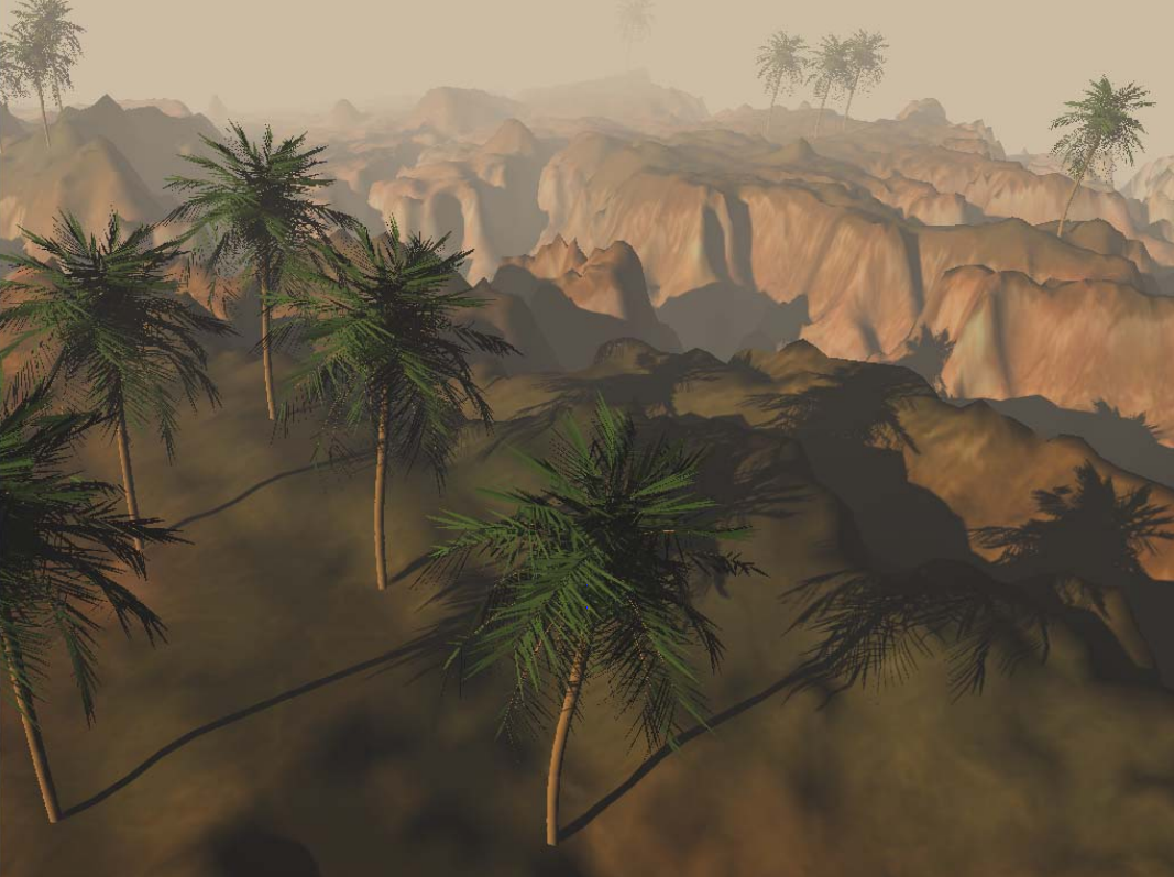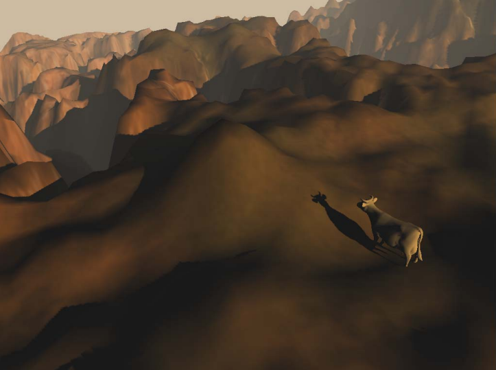 이 섹션은 4개로 나눠진 CSM로 큰 크기의 지형을 렌더링한 것의 스크린샷 몇장을 보여줍니다, 그리고 각각의 쉐도우맵은 1024x1024 입니다.