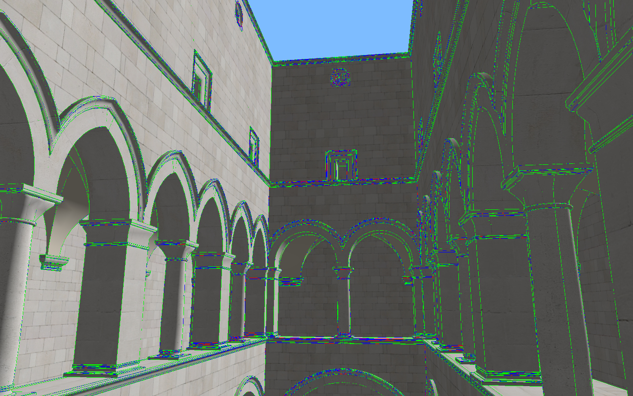 이 샘플의 다른 접근법은 픽셀에 샘플들 사이의 normal, color 그리고 depth 에서 비연속성을 찾는 것이다. 그래서 만약 비연속성이 특정 문턱값 보다 크다면, 우리는 픽셀을 complex로 결정한다. 이 접근법은 complex 픽셀이 오직 가장자리에서만 생성된다는 이점을 갖고 있다. 그러나 complex를 검출하는 동안 픽셀의 샘플을 반복해야 합니다.