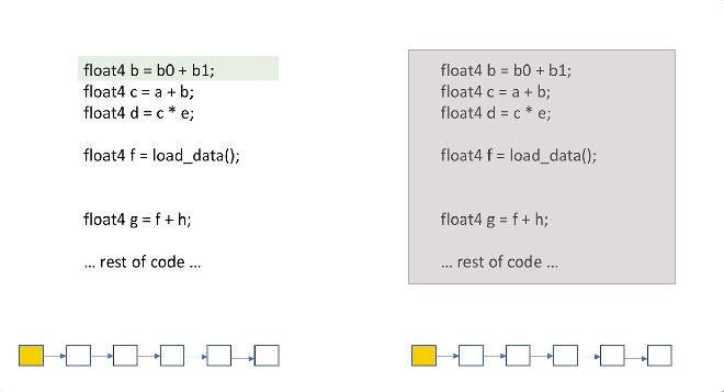 - VGPR은 종종 점유를 제한하는 자원입니다; 우리가 SGPR를 더 사용하는 것이 VGPR의 압박을 더 줄여서, 점유가 높아지는 결과를 만듭니다. (점유에 대한 것이 혼란스럽다면, 더 자세한 것은 [1]을 확인해주세요)