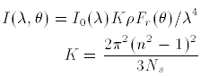 Rayleigh 산란이 발생되는 경우 그림5의 식을 사용해 카메라 쪽으로 들어오는 라이트의 강도를 계산할 수 있습니다.