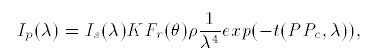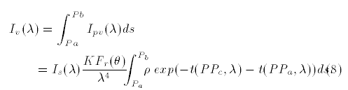 이 식은 태양으로 부터 온 한개의 반직선이 대기로 진입하여 특정 위치에서 산란된 후 그중 카메라로 향하는 라이트의 강도를 설명하는 식입니다.