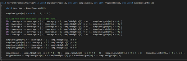 - 아래와 같이 SV_Coverage 플래그가 동일한 경우, 해당 샘플은 1번 수행하되 Weight를 2배로 설정해주는 방식으로 Lighting 연산을 줄여준다.