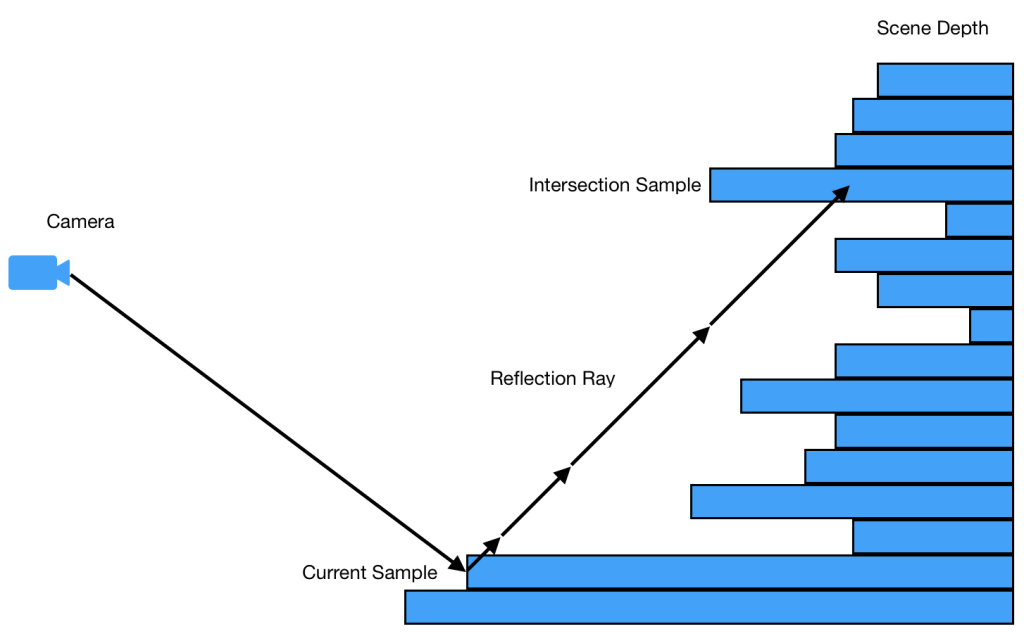 출처 : sugulee.wordpress.com/2021/01/19/screen-space-reflections-implementation-and-optimization-part-2-hi-z-tracing-method/