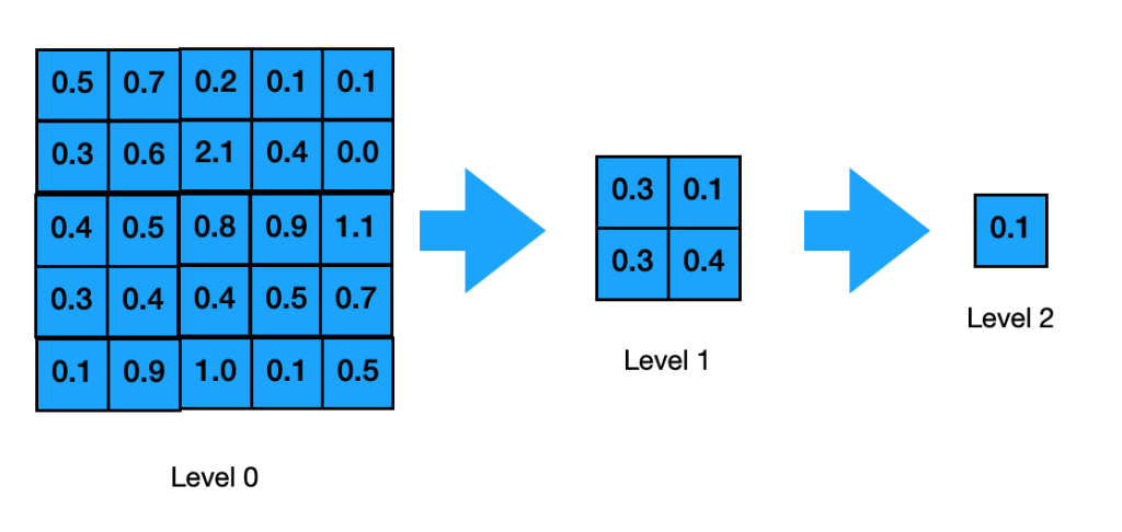 책에 따르면, 아래 레벨의 각 셀은 위 레벨의 최소 2x2로 설정됩니다.