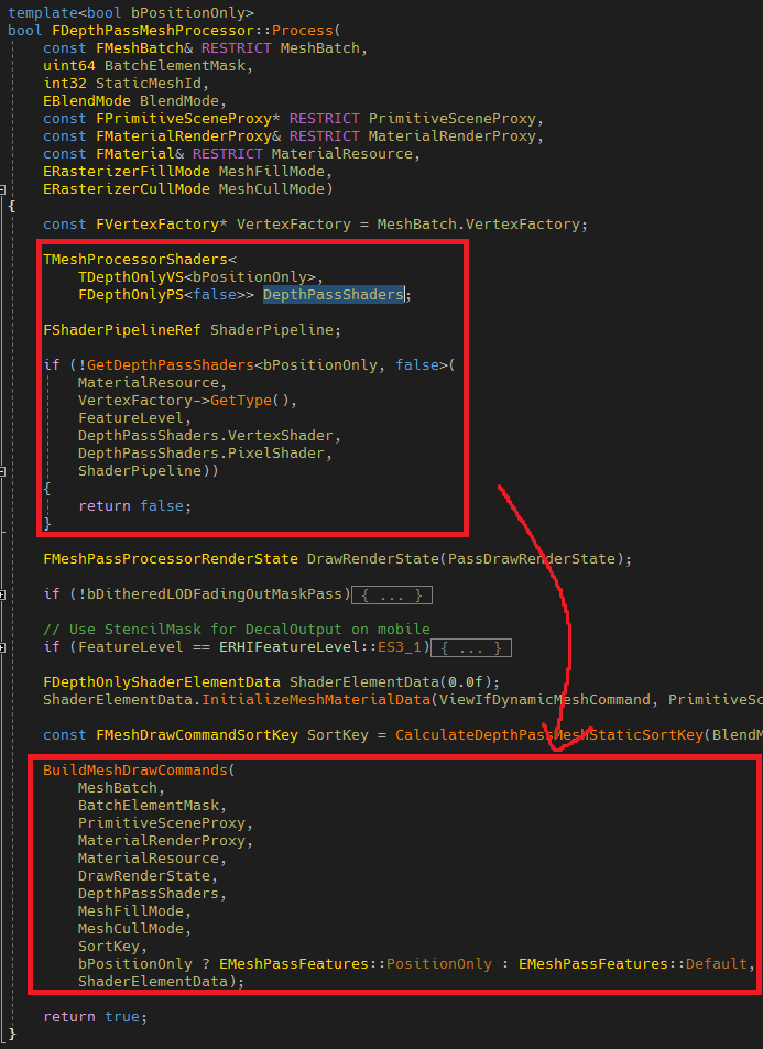 - 여러 종류의 FMeshPassProcessor 중 FDepthPassMeshProcessor를 타겟으로 잡고 진행해봅시다.
