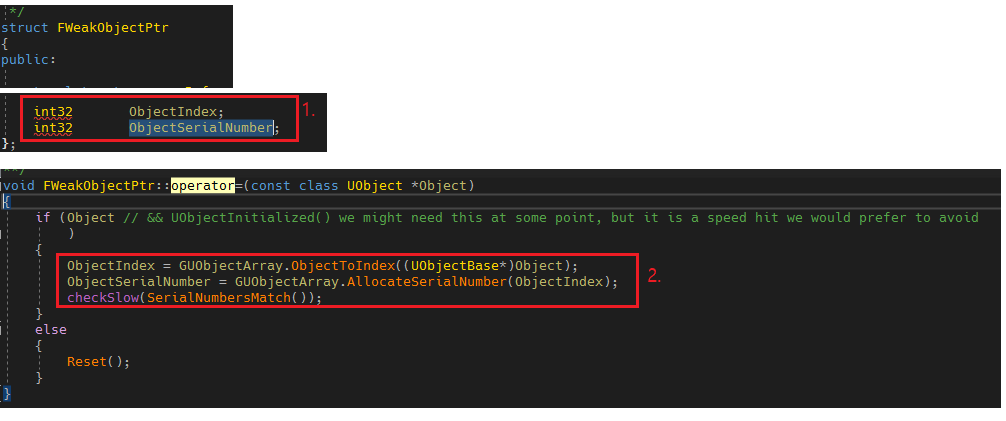 2. 만약 UObject로 FWeakObjectPtr를 만든다면 ObjectIndex와 ObjectSerialNumber를 설정해줍니다.