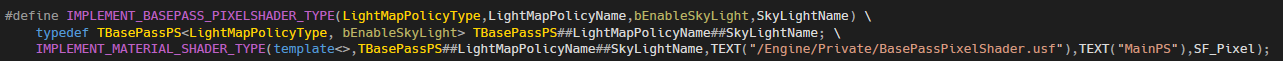 2. 이 함수는 약속된 함수입니다. 1에서 확장된 매크로를 보면 ShouldCompilePermutationImpl 함수가 있는데 여기서 호출됩니다. ShouldCompilePermutation와 같은 이름에 시그니쳐가 다른 함수들도 있습니다만 이 함수가 하는 일은 쉐이더를 컴파일 여부를 결정합니다.