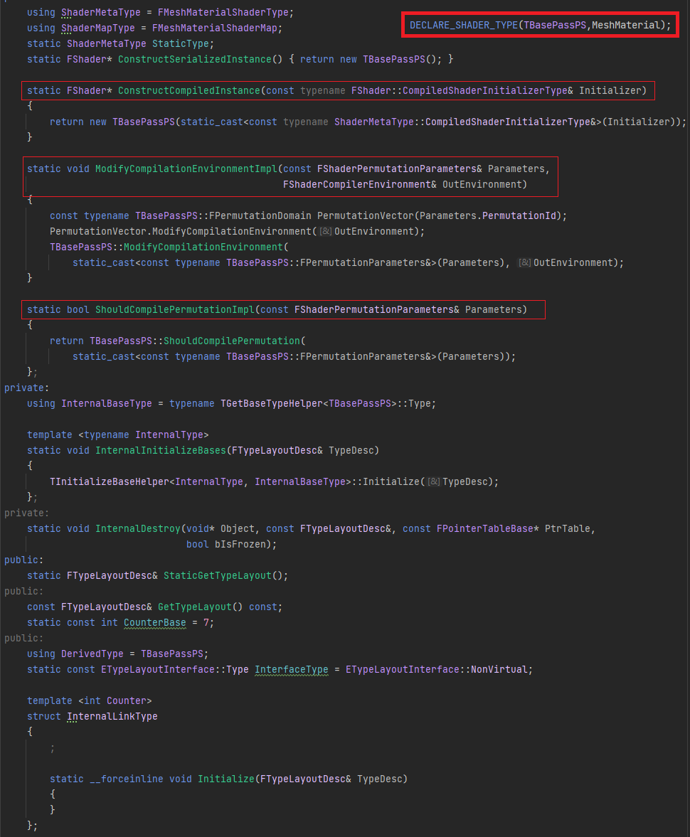 위 코드의 DECLARE_SHADER_TYPE이 확장된 매크로의 그림3와 같습니다. 약속된 함수가 3개 있는데 이것들이 중요합니다.