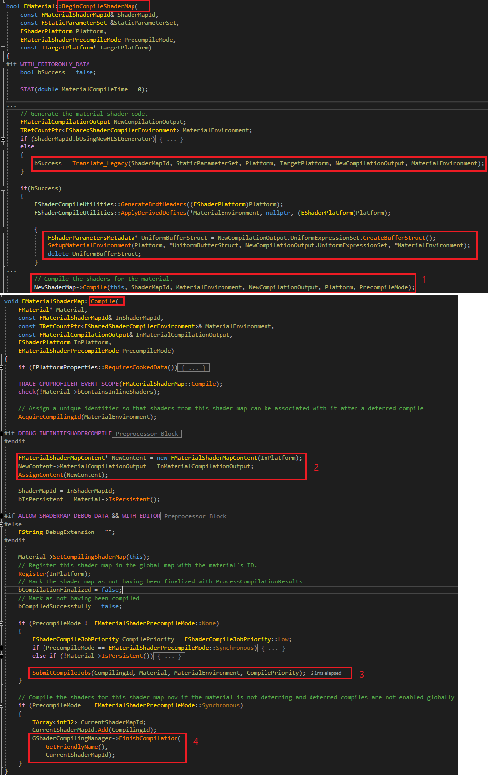 1. MaterialShader와 MeshMaterialShader가 컴파일되는 과정을 알아봅시다.