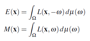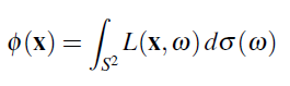 L(x, ω) 는 x 주위를 지나면서 ω 주위 방향을 지나가는 광자의 밀도를 측정한 것이다.