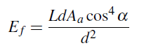 우리가 기울어진 표면을 dAʹ라고 부르고 방향에 수직인 표면을 dA라고 한다면, dA = dAʹcos θ입니다. 그리서 Radiance는 아래와 같이 표현할 수 있습니다.