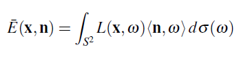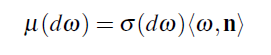 적분의 표기법은 투영되어진 Solid angle을 사용하므로써 간단해질 수 있습니다. 나는 새로운 측도로 ("투영되어진 Solid angle 측도" 라고 불리는 μ) μ를 정의하였습니다. 그것의 연관성을 아주 미소한 세트를 위해 σ 에 줌으로써: