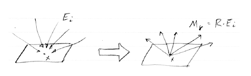 반사되어진 Radiance와 입사되는 Irradiance의 관계는 이후에 BRDF에 대해서 논의할때 다시 나올 것입니다.