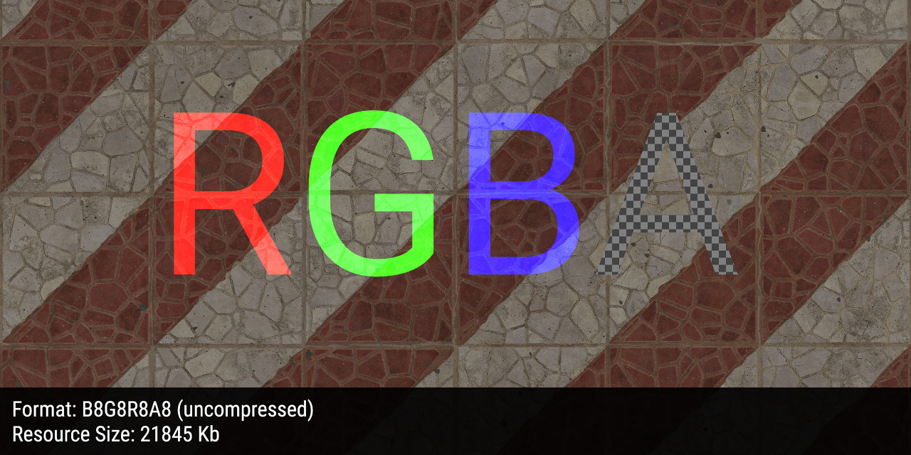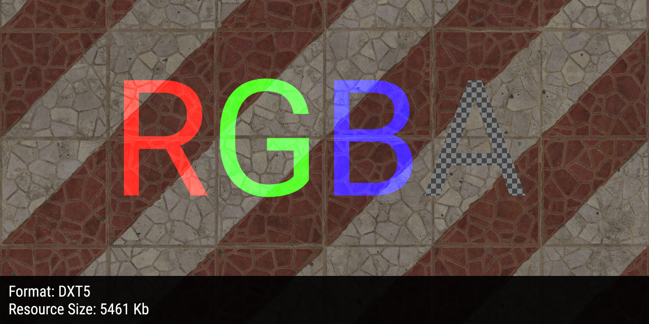 DirectX11이나 그 위 버전을 사용한다면, 엔진은 뒤에서 S3 텍스쳐 압축 대신에 알파채널의 존재 여부에 따라 BC1 또는 BC3 을 사용합니다. BC (블록 압축의 약자) 1 그리고 3은 DXT1 그리고 DXT5 의 새로운 이름입니다. 내가 이해하기로는 구현이 실질적으로 동일합니다.