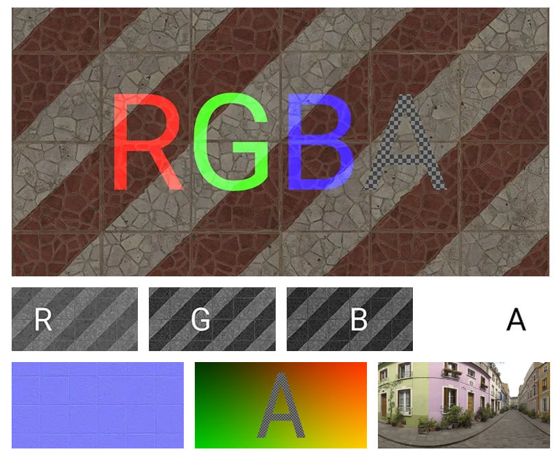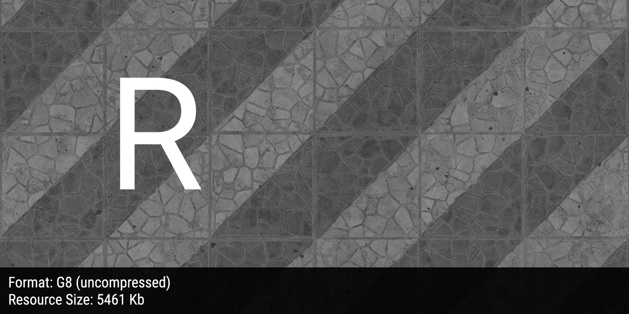 이 싱글 채널 포맷은 당신의 빨강 채널에 있는 모든 것을 16비트 half float 값으로 인코딩할 것이고 나머지를 버릴 것입니다. 일반적인 16비트 텍스쳐처럼, 이것은 G8과 같은 포맷과 비교하여 훨씬 높은 범위의 컬러 값을 만들어줍니다.