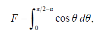 이 θ 구간에 들어오는 라이트를 램버트 효과를 적용하여 적분하게 되면 아래 그림6의 식이 나옵니다. 그리고 이 적분식을 풀어내면 cos(a) 가 나옵니다.