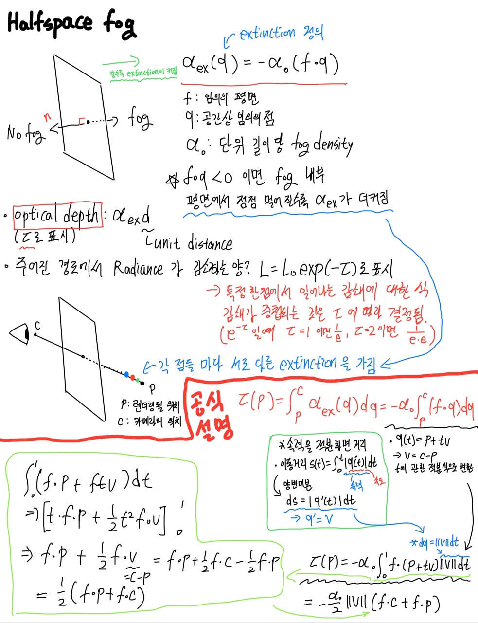 FGED2 에 나오는 Halfspace fog 공식을 유도해봅니다. 이미 책에 유도된 공식에서 이해가 안되는 부분을 추가하여 정리한 글입니다.