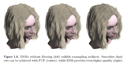 - DSM의 경우는 위의 이미지 처럼(Figure 1.4), Depth 값을 얻어온 후에 링크드리스트로 알맞은 Depth를 추적해야 하므로 연산이 비싸다. 만약 Deferred Rendering이 아니라면, 보이지 않는 픽셀의 그림자 여부까지 이런 방식으로 판별하게 되므로 연산이 많이 느려지게 된다.