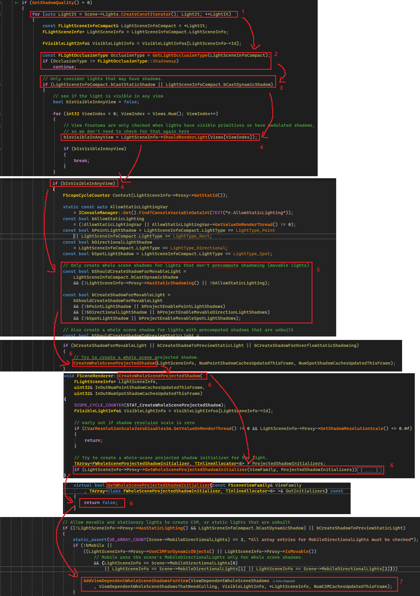 3.4. 라이트가 쉐도우맵을 렌더링 할 수 있게 해주는 FProjectedShadowInfo를 생성