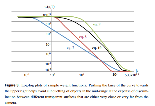 아래 그림8 처럼 Weight 함수는 z값이 0.1~500 인경우 0.01~3000 의 값을 돌려줍니다. 각각의 함수들의 커브를 보고 적절한 것을 선택할 수 있을 것입니다.