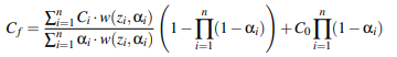 Bavoil and Myers' Method(2008) 는 Meshkin's 연산보다 더 나은 근사를 보여줍니다. 이 연산은 weighted average 연산을 사용합니다. 식의 내부에 보면 이제까지의 알파의 평균을 사용하는 것을 볼 수 있습니다. 이 방식의 단점은 C=0, a=0인 완전히 투명한 표면도 최종 결과에 영향을 미칠 수 있는 점입니다. 이렇게 되는 이유는 알파값이 0인 값도 평균값에 영향을 미칠 수 있기 때문입니다.