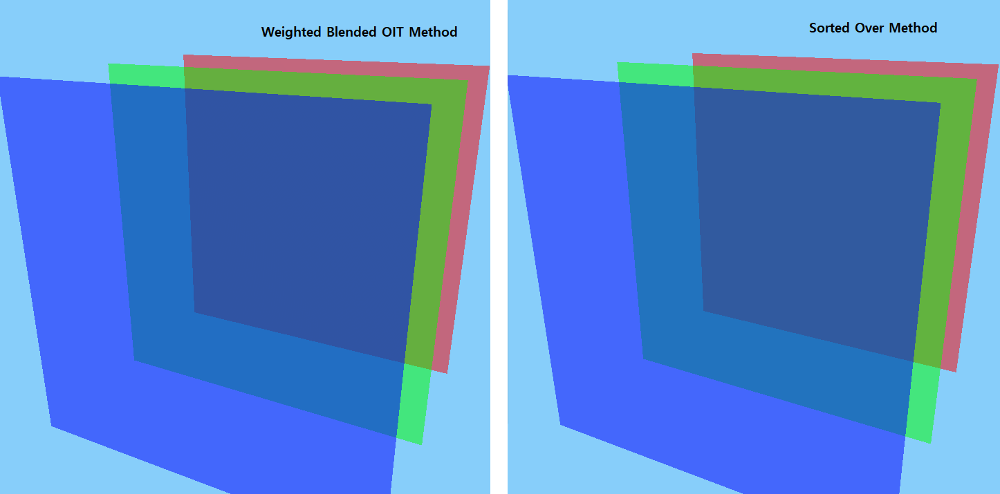 하지만 근거리에서의 반투명 결과는 거의 Sorted OVER 방식과 동일합니다.