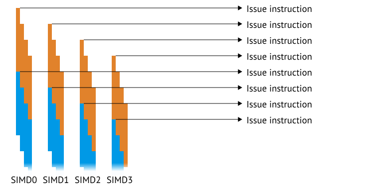 휴, 꽤 길었네요, 그리고 불행히도 아직 끝나지 않았습니다. 지금까지, 우리는 모든 것이 SIMD 에서 실행되는 척했습니다, 그러나 내가 이전에 쓴 내용인 실행 하는데 관련된 2개의 블록이 있다는 것을 기억하시나요? 이제 다른 일을 시작할 시간입니다.